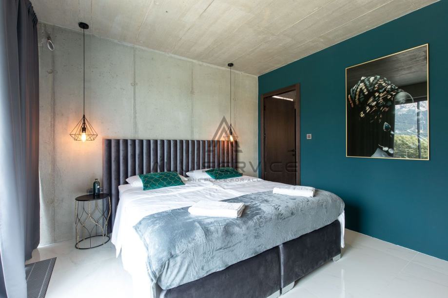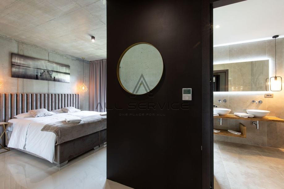 te toplim detaljima čine čitav unutarnji interijer izuzetnim. Posebnost ove nekretnine osim vrhunskih materijala su i staklene stijene s niskoprofilnim okvirima