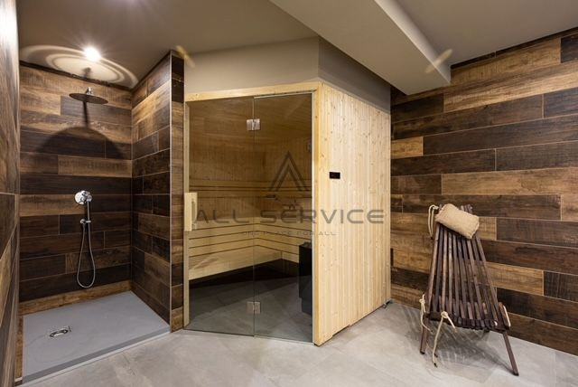 U suterenu se nalazi wellness s finskom saunom i jacuzziem, tušom, fitness, igraonica sa TV-om,
