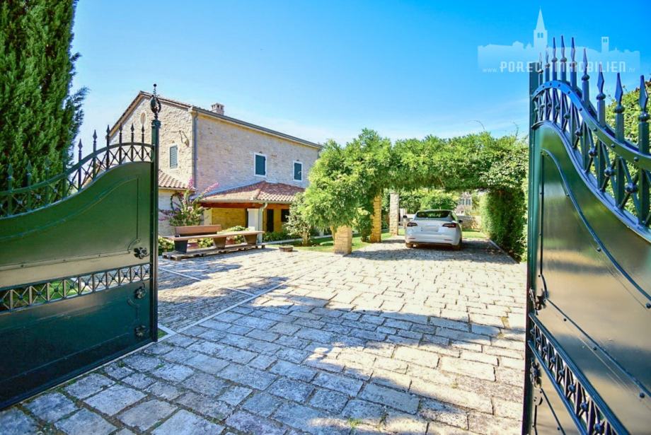 Na posjed od 1500 m2 se ulazi kroz kapiju na daljinsko otvaranje, nakon čega se otvara prekrasan pogled na kamenu kuću, popločano dvorište i posebni uređeni vrt u kojemu prevladavaju različite mediteranske biljke, poput hortenzija, bugenvilije, borovi, ružmarini, jasmini...