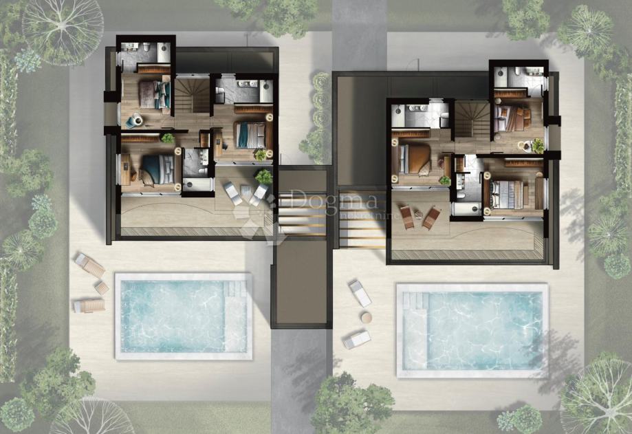 Projekt je pažljivo osmišljen s naglaskom na kvaliteti gradnje i pažljivom odabiru materijala. Villa će se prostirati na dvije etaže, nudeći ukupno 4 prostrane spavaće sobe, svaka s vlastitom kupaonicom (ukupno 5). Prizemlje je osmišljeno kao otvoreni prostor koji obuhvaća ulazni prostor, dnevni boravak, kuhinju i blagovaonicu. Zahvaljujući jugozapadnoj orijentaciji, prostorije će biti prožete prirodnim svjetlom tijekom cijelog dana.