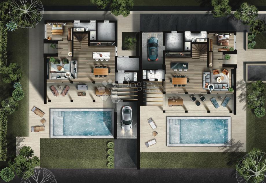 Projekt je pažljivo osmišljen s naglaskom na kvaliteti gradnje i pažljivom odabiru materijala. Villa će se prostirati na dvije etaže, nudeći ukupno 4 prostrane spavaće sobe, svaka s vlastitom kupaonicom (ukupno 5). Prizemlje je osmišljeno kao otvoreni prostor koji obuhvaća ulazni prostor, dnevni boravak, kuhinju i blagovaonicu. Zahvaljujući jugozapadnoj orijentaciji, prostorije će biti prožete prirodnim svjetlom tijekom cijelog dana.