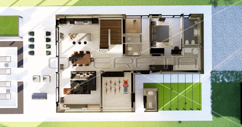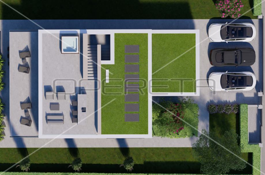 Villa One se prostire na parceli od 1.015 m2 s 459 m2 zelene površine.