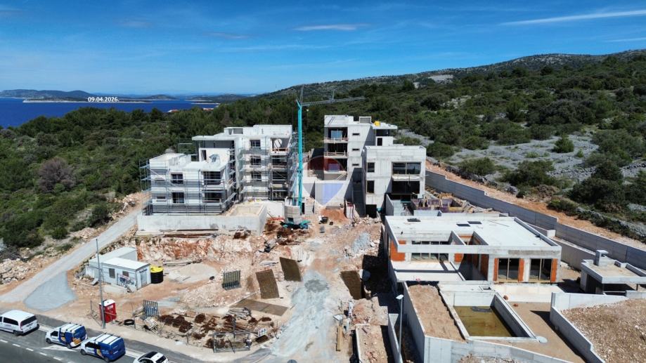 Ova vila dio je pažljivo osmišljenog VIP kompleksa vila i stanova, koji je smješten neposredno uz obalu, s pristupom prirodnoj stjenovitoj plaži udaljenoj svega 100 metara. Kompleks je savršeno uklopljen u mediteranski pejzaž, a svaka jedinica uživa vlastitu okućnicu i pogled na more i okolne otoke. Udaljenost do centra mjesta iznosi otprilike jedan kilometar, što odgovara ugodnoj šetnji uz more u trajanju od 15-ak minuta, dok se sam kompleks nalazi uz glavnu Jadransku magistralu, što omogućuje jednostavan pristup.