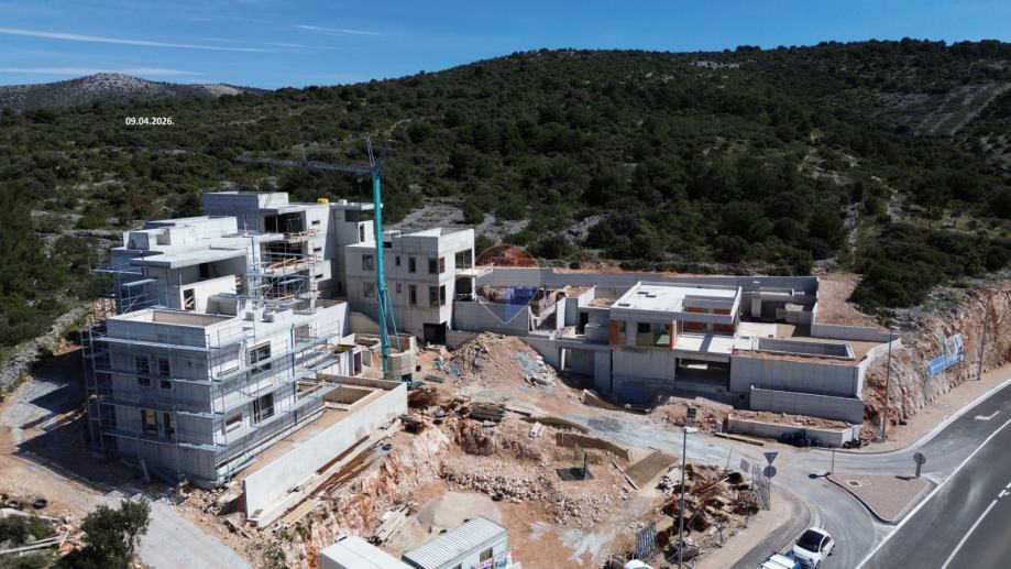 Cijeli kompleks, uključujući i ovu vilu, građen je vrhunskim materijalima i po visokim građevinskim standardima. Nosiva i međukatna konstrukcija izvedena je u armiranom betonu (AB), dok su pregradni zidovi izrađeni u kombinaciji opeke i knaufa, čime je osigurana čvrstoća i izvrsna zvučna izolacija. Vanjska stolarija je aluminijska, višeslojna s termoizolacijskim plinom i električnim roletama, a fasadni sustav izveden je sa Stirodurom debljine 10 cm, što osigurava odličnu toplinsku izolaciju.