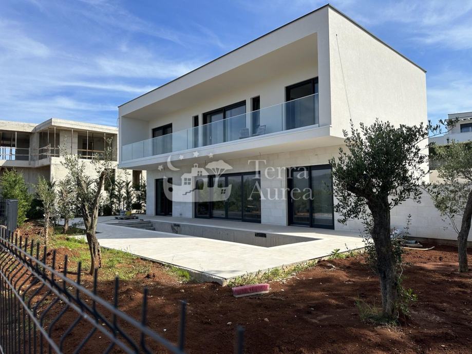 Na prvom katu nalaze se tri moderne spavaće sobe svaka s vlastitom kupaonicom te prvi kat također ima izlaz na terasu s koje se pruža panoramski pogled na more. Vilu krasi vrhunska kvaliteta gradnje i opreme, visokokvalitetne podne obloge te klimatizacija, što osigurava ugodan boravak tijekom cijele godine.