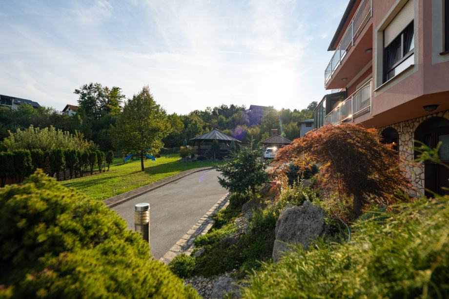 Parcela od 2800m2, djelomično u građevinskoj zoni, pruža razne mogućnosti za proširenje. Okućnica je savršeno uređena te sadrži dječje igralište, prostranu sjenicu, roštilj s vanjskom kuhinjom i krušnom peći te lijepo održavan travnjak. Postoji i mogućnost izgradnje bazena, čime bi se dodatno povećala vrijednost ove luksuzne nekretnine.