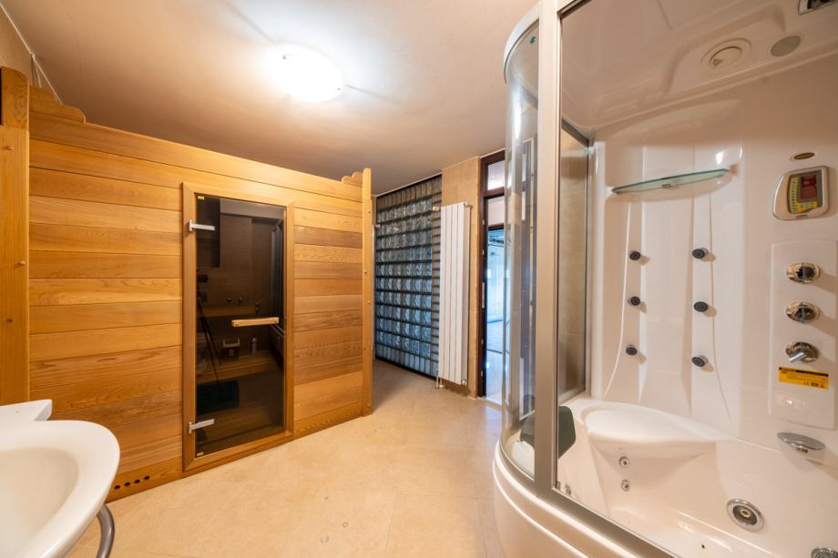 Grijana garaža za dva automobila, konoba, vinski podrum i kupaonica sa saunom – savršena za opuštanje i relaksaciju.