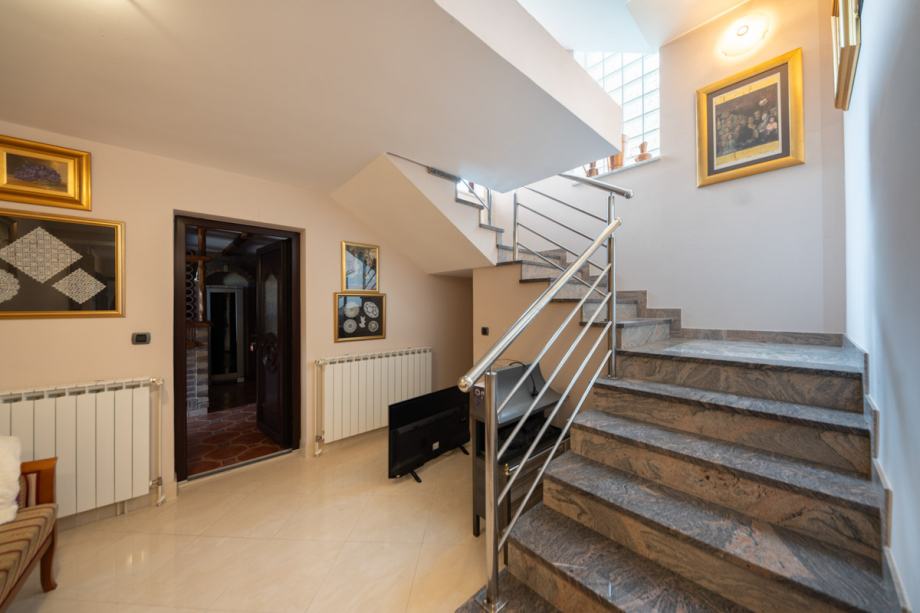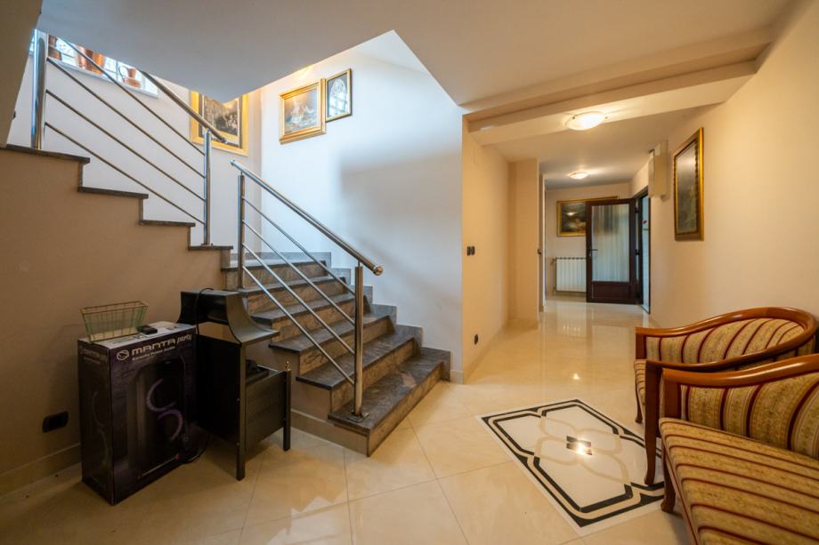 Vila je opremljena vrhunskim stilskim namještajem i iznimno kvalitetnim materijalima kao što su parket od slavonskog hrasta, keramika visoke kvalitete i mramorni detalji. Sva tri kata pružaju prostrane i funkcionalne prostorije, savršeno raspoređene za život u kojem je svaki kutak osmišljen s posebnom pažnjom.