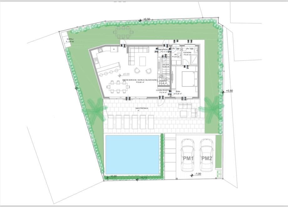 Netto korisna površina vile: 220 m2 + 40m2 bazen + 2 parkirna mjesta.