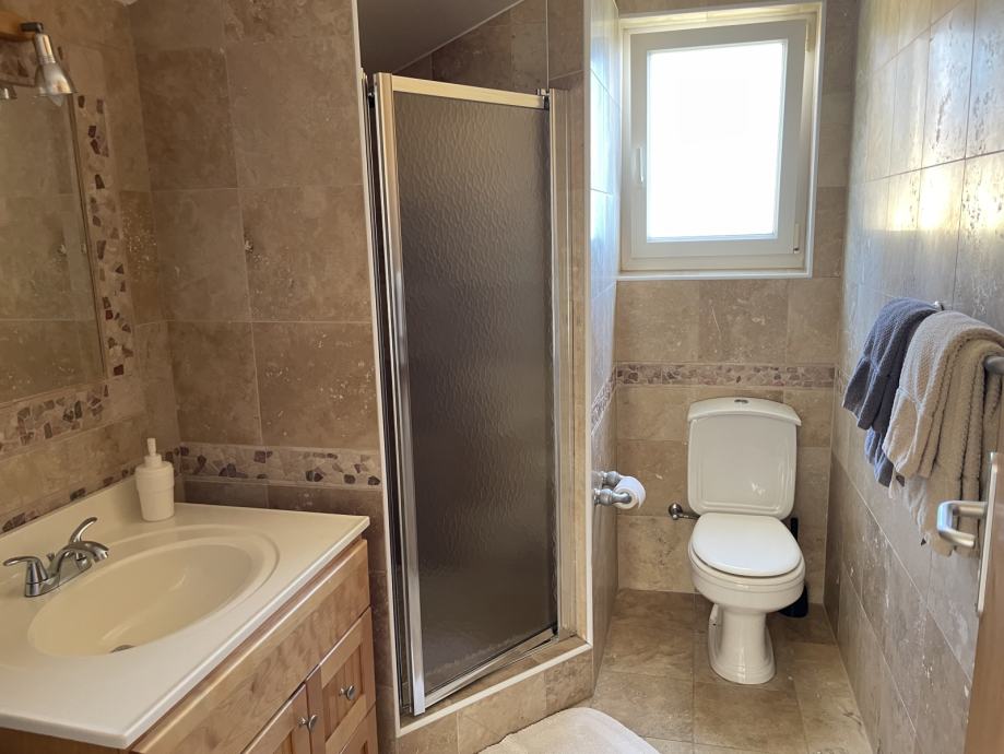 The main house offers four large bedrooms, 3.5 bathrooms, a summer kitchen, outdoor shower, wine cellar with barbecue, and a large terrace. The lower level includes two separate apartments with mezzanine sleeping areas, open-concept living rooms with kitchen, and stunning sea-view terraces just steps from the water.