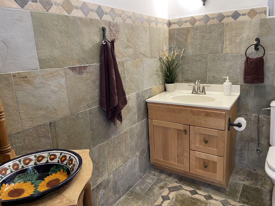 Glavna kuća sadrži četiri prostrane sobe, tri i pol kupaonice, ljetnu kuhinju, vanjski tuš, konobu s roštiljem i veliku terasu. U donjem dijelu nalaze se dva zasebna apartmana – svaki s galerijom, kuhinjom, kupaonom i terasom tik uz more.