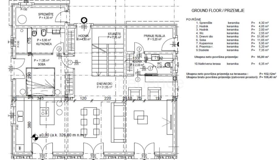 Blagovaonicu i kuhinju s izlazom na natkrivenu terasu