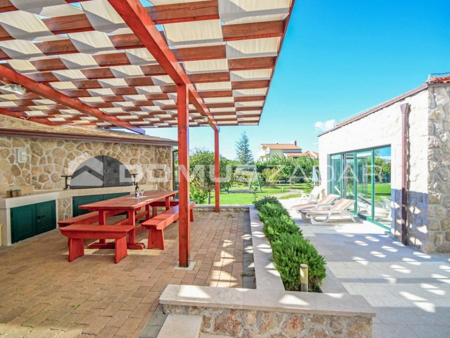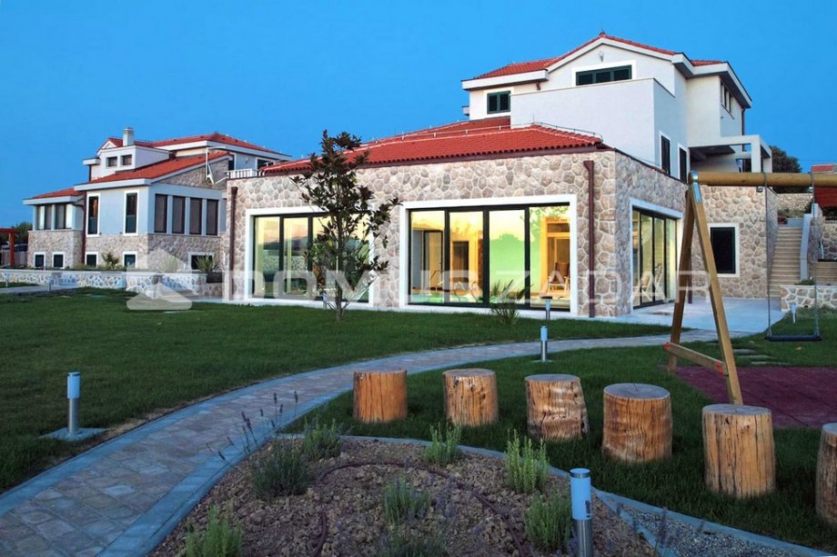 Prodaju se dvije ekskluzivne vile bogato opremljene raznim sadržajima. Građene sa ljubavlju i pažnjom na detalje, kombinacijom suvremenih i tradicionalnih materijala. Velika privatna okućnica od 2900m2 gotovo kao resort. Od sadržaja tu su unutarnji grijani bazen, jacuzzi, sauna, fitnes, konoba, komin, terasa, tuševi, dječji park, praonica.. Jedna vila ima 2 velike stambene jedinice sa posebnim ulazom. Svaka stambena jedinica sastoji se od dvije sobe, kuhinje, blagovaonice, dnevnog boravka i terase, ukupno 4 sobe stambene površine 333m2. Druga vila ima dvije stambene jedinice sa posebnim ulazom također sa po dvije sobe, kuhinjom, blagovaonicom, dnevnim boravkom i terasama ukupne površine 250m2. Blizina mora i marine.