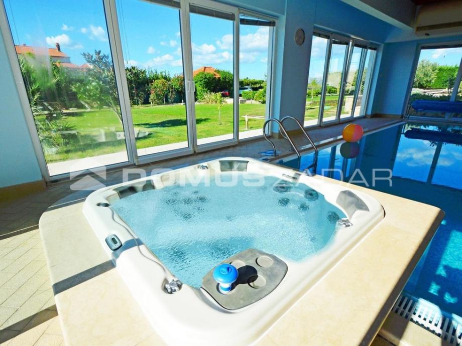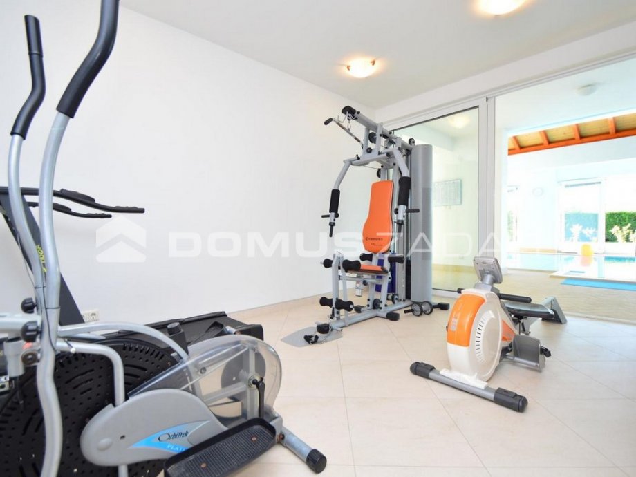 Two exclusive villas for sale, richly equipped with various amenities. Built with love and attention to details, a combination of modern and traditional materials. Large private yard of 2900m2 almost as a resort. From the contents, there are an indoor heated swimming pool, Jacuzzi, sauna, fitness room, tavern, fireplace, terrace, showers, children's park, laundry. One villa has 2 large living units with separate entrance. Each living unit consists of two bedrooms, a kitchen, a dining room, a living room and a terrace, a total of 4 rooms with a living space of 333m2. The second villa has two living units with a separate entrance also with two bedrooms, kitchen, dining room, living room and terraces of a total surface of 250m2. Close to sea and marina.