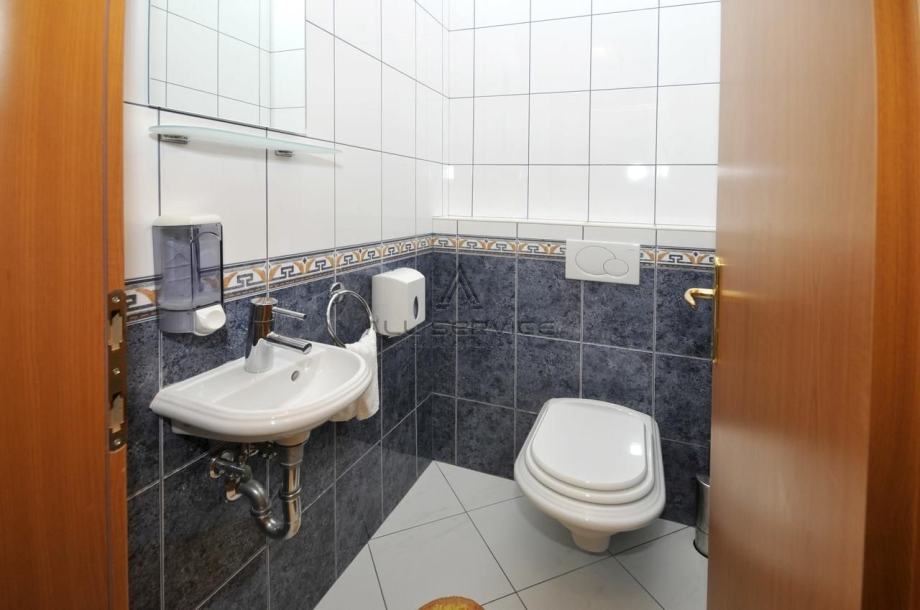 U prizemlju vile je ogromni dnevni boravak, kuhinja, predsoblje, kupaonica i 2 wc-a, kvadrature kao cijela jedna etaža, te ogromna terasa.