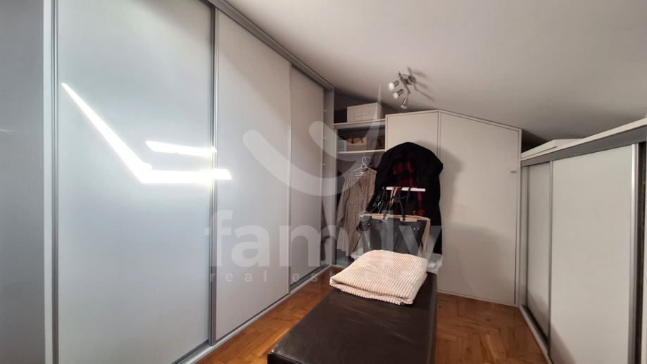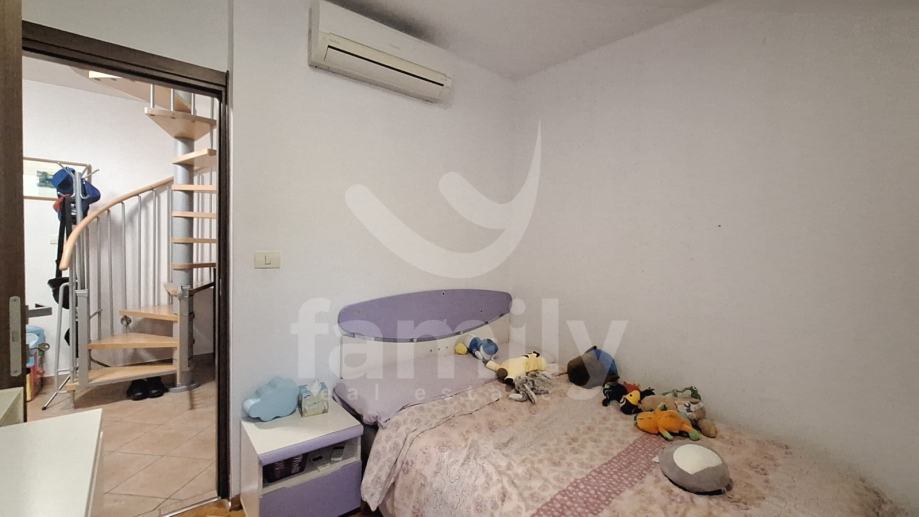 Upravo u sklopu Općine Fažana se nalazi navedeni komforan dvoetažni stan smješten na drugom katu stambene zgrade sa površinom od 92 m2. Stan se prostire na dvije etaže te se prizemlje istoga sastoji od ulaznog predprostora, dvije osvijetljene spavaće sobe, kupatila opremljenim perilicom i sušilicom rublja, ugradbenim vodokotlićem i bojlerom, dnevnim boravkom sa izlazom na zatvorenu lođu površine otprilike 5 m2 kao i prostora za ručavanje i kuhinje. Spiralno stepenište obloženo punim drvetom vodi do druge etaže navedene nekretnine te se sastoji od predprostora, kupatila sa dnevnim otovorom i jedne spavaće sobe opremljenom ugradbenim kliznim ormarima rađenim po mjeri. Ovaj prekrasni stan opremljen je PVC stolarijom sa duplim staklom i škurama i VELUX krovnim prozorima dok je sustav grijanja i hlađenja reguliran putem četiri jedinice klima uređaja te su podovi obloženi parketom u dnevnom boravku i sobama dok je u kupatilima postavljena keramika. Stan je također opremljen sa protuprovalnim ulaznim vratima, brojila struje i vode su odvojena te je betonirana međukatna konstrukcija.