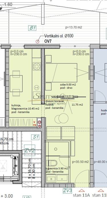 Stan 11A nalazi se na razini visokog prizemlja te se prostire na 42.35m2 netto površine, 35.5m2 unutarnje površine.