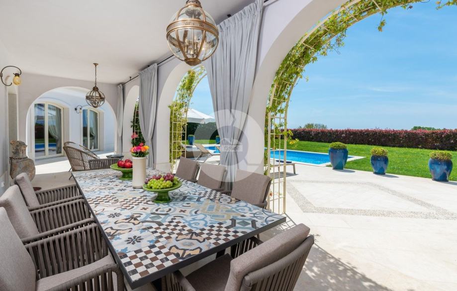 Lijepa i velika okućnica s prekrasnim bazenom (oko 50 m2) vrlo je dobro održavana i nudi dovoljno prostora i raznih mjesta za utočište, kao i pogled na maslinike i prekrasno plavo more!