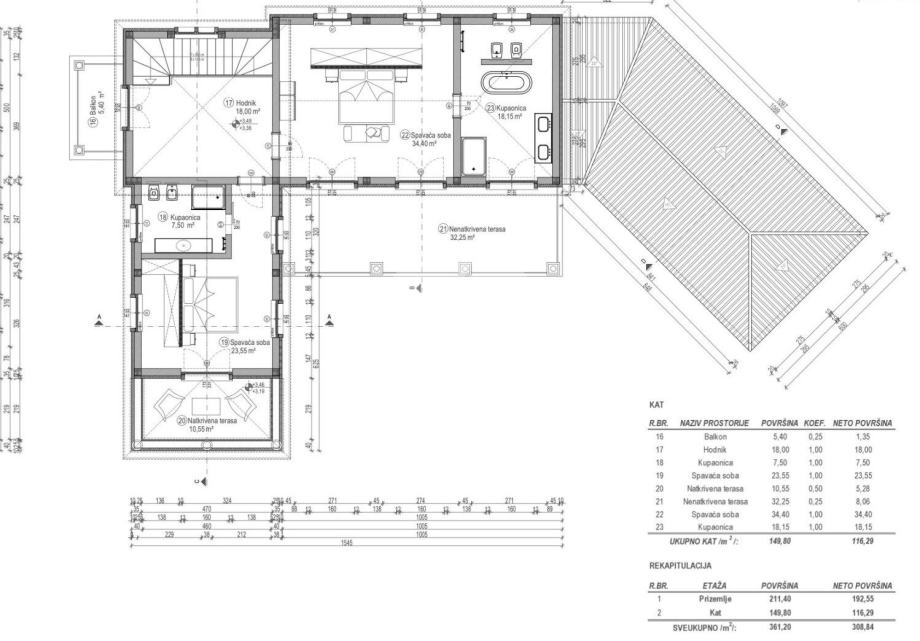 Dvostruka garaža i nadstrešnica upotpunjuju ponudu.
