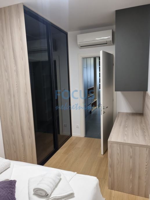 We are renting a luxuriously furnished apartment in a new building in Split, 85 m2. The apartment is fully equipped, it consists of an entrance hall, a kitchen with all appliances, a living room with a dining room, two bedrooms, a bathroom and a loggia, and is equipped with a smart building system, in the basement there are garages with parking space, nearby are all the facilities necessary for a quality life, as well as a promenade and the beach, ready to move in, an ideal opportunity for business people and small families. Long term.