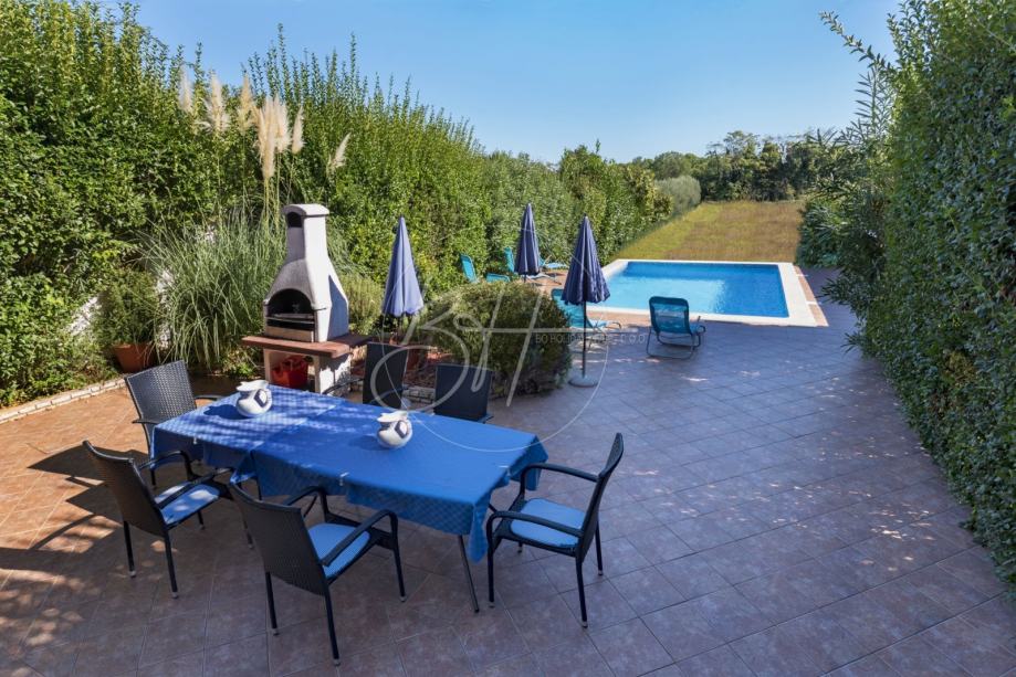 U dvorištu se nalazi bazen površine 24 m² sa sunčalištem i roštiljem – savršeno mjesto za opuštanje i druženje. Okružena prirodom, kuća je zaklonjena od pogleda, što osigurava potpunu diskreciju i mir.