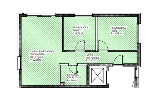 Kuhinja, blagovaonica i dnevni boravak — 22,09 m²