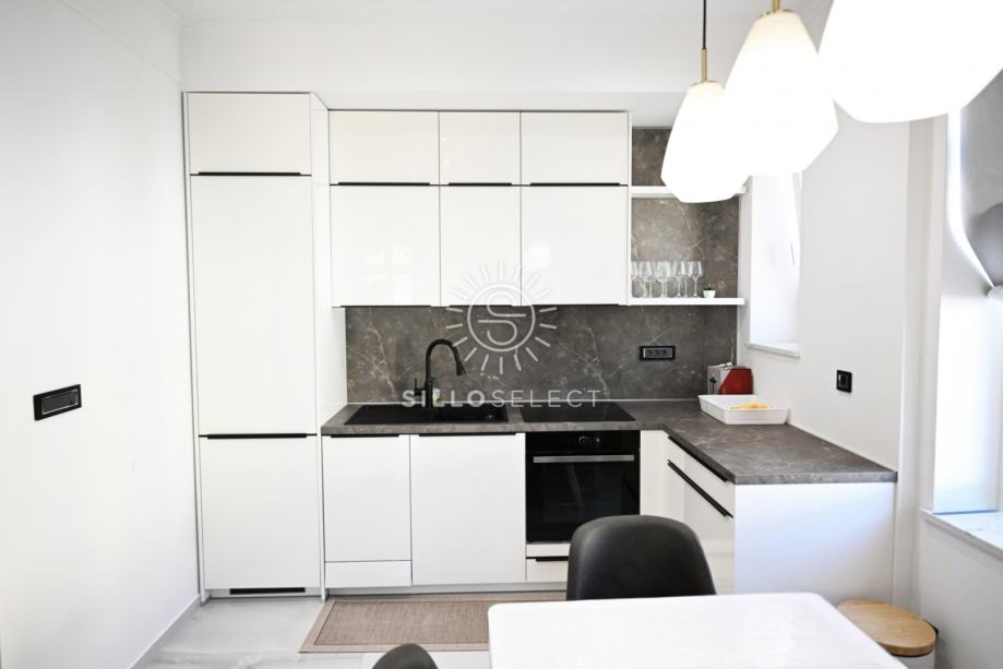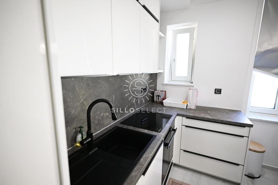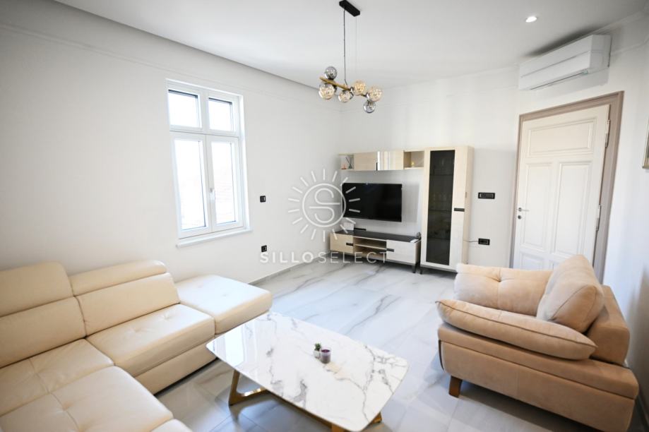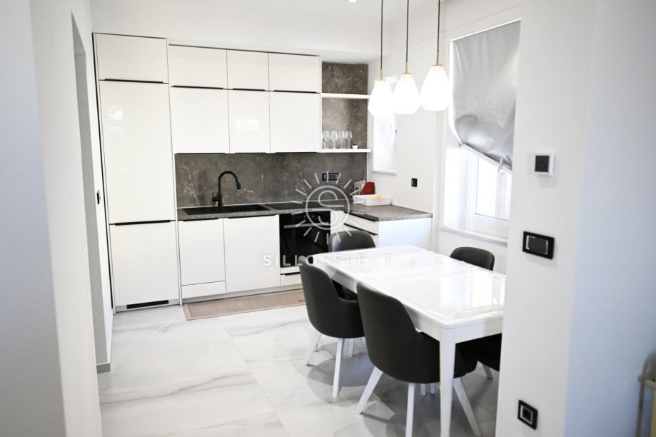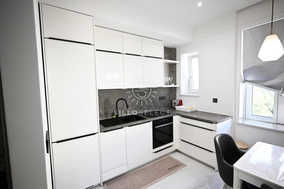 U samom centru Opatije, u obnovljenoj urbanoj vili, smješten je stan na 3. katu zgrade s ukupno tri kata. Stan je u potpunosti adaptiran 2025. godine i uređen moderno – s naglaskom na ugodan i praktičan život.