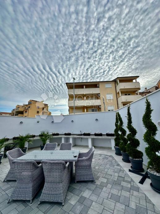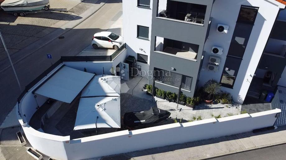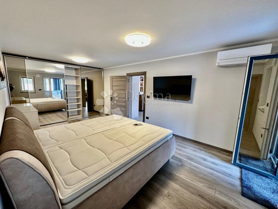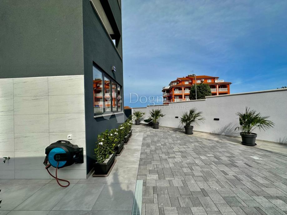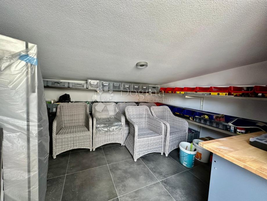 Uz stan dolazi i veliko dvorište s vrtnom kućicom, roštiljem, vanjskim kuhinjom i tušom. (dvorište je zatvoreno s kapijom)