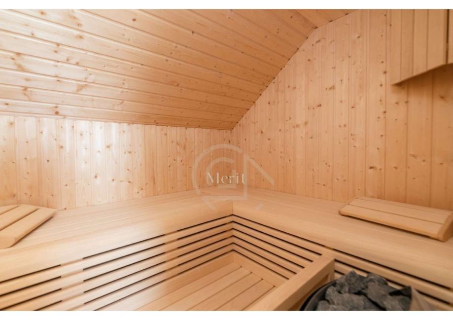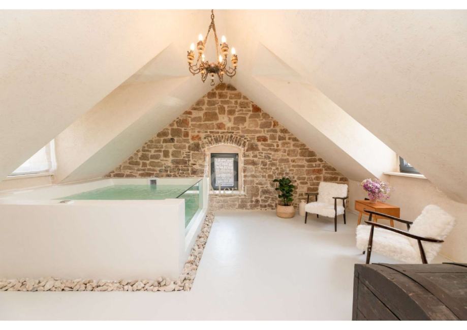 Za potpuni opuštaj, potkrovlje kuće sadrži spa zonu – saunu, jacuzzi i stol za masažu. Ovaj privatni raj savršen je za one koji žele uživati u potpunom miru i luksuzu.