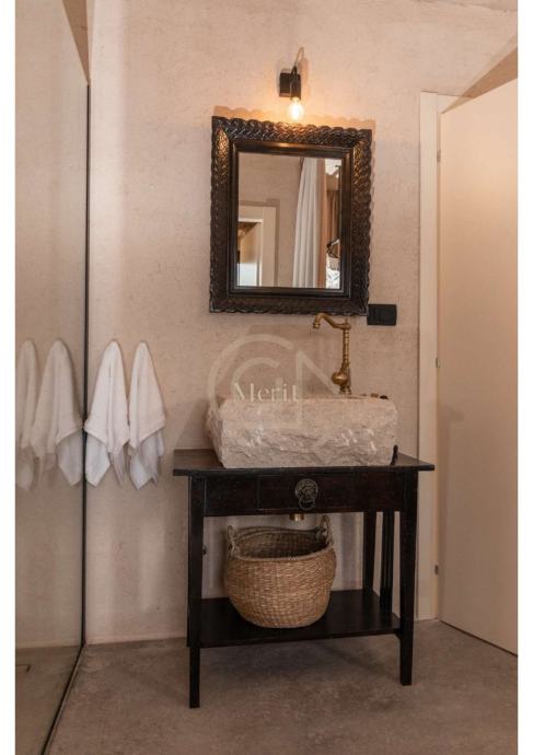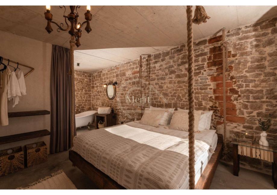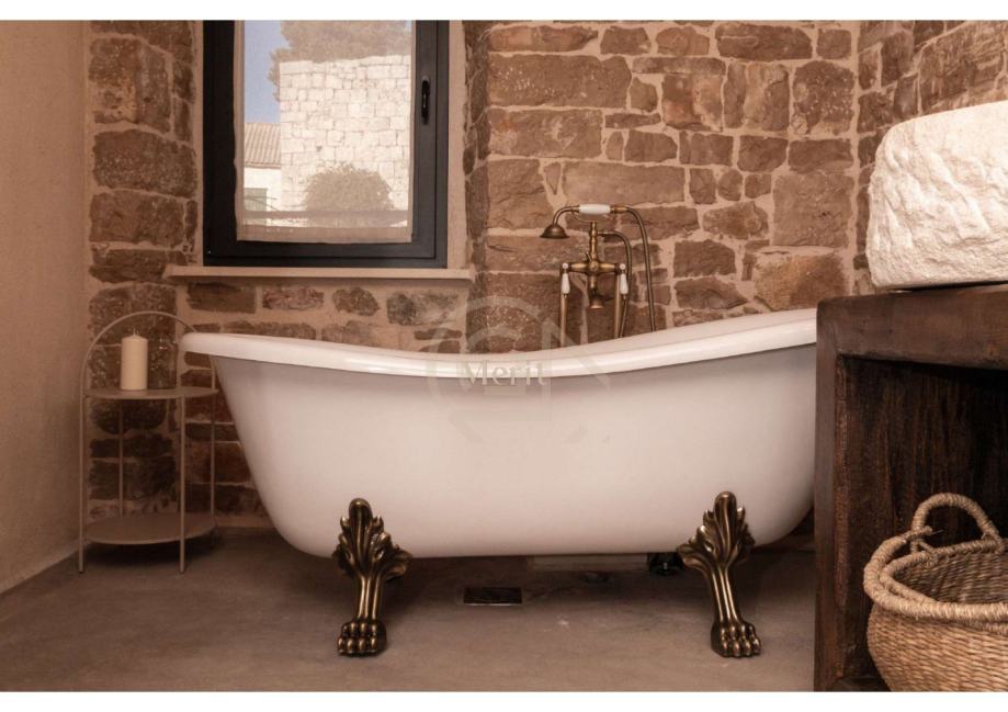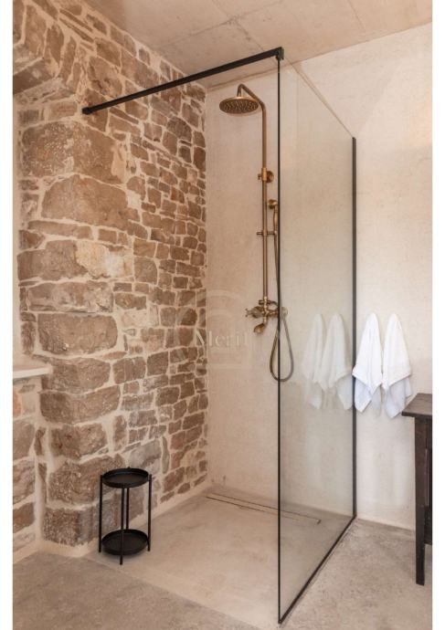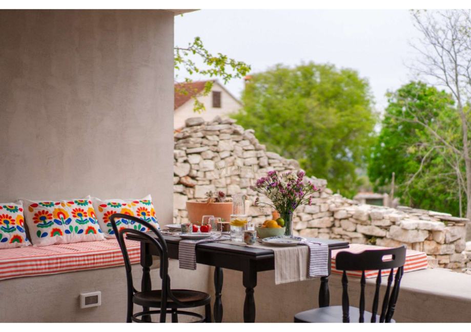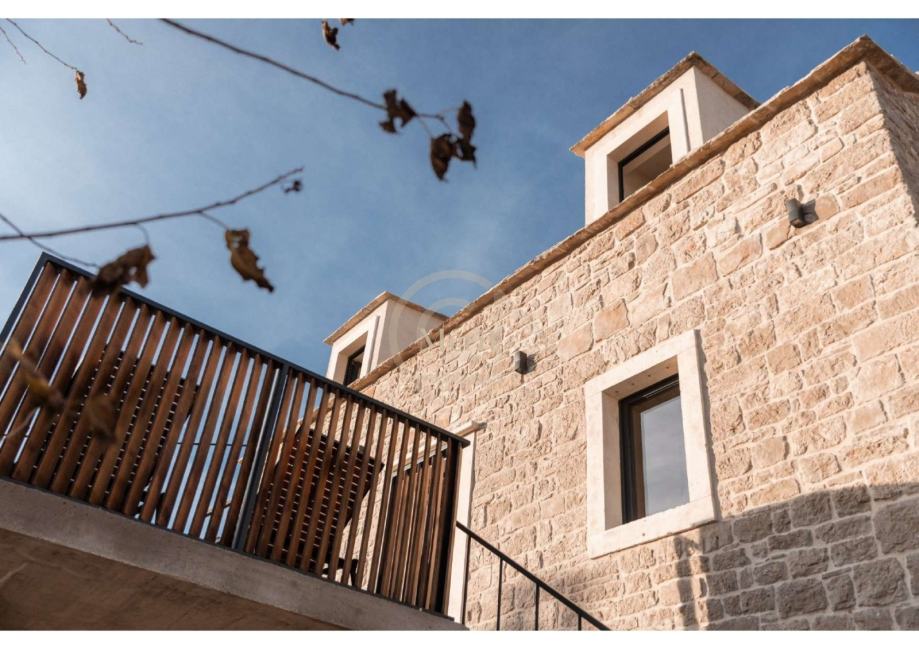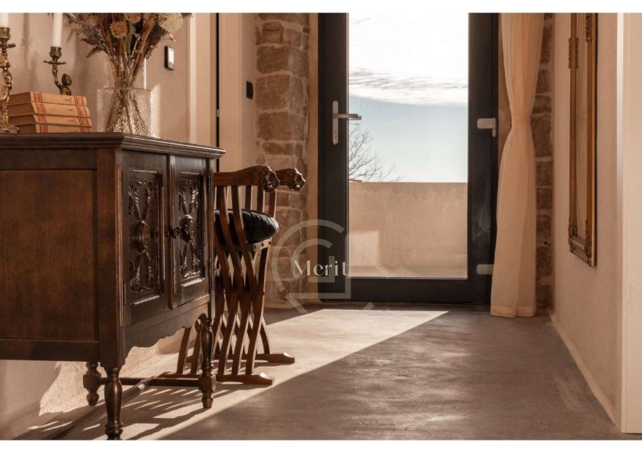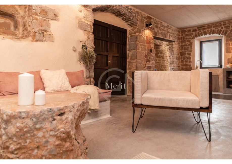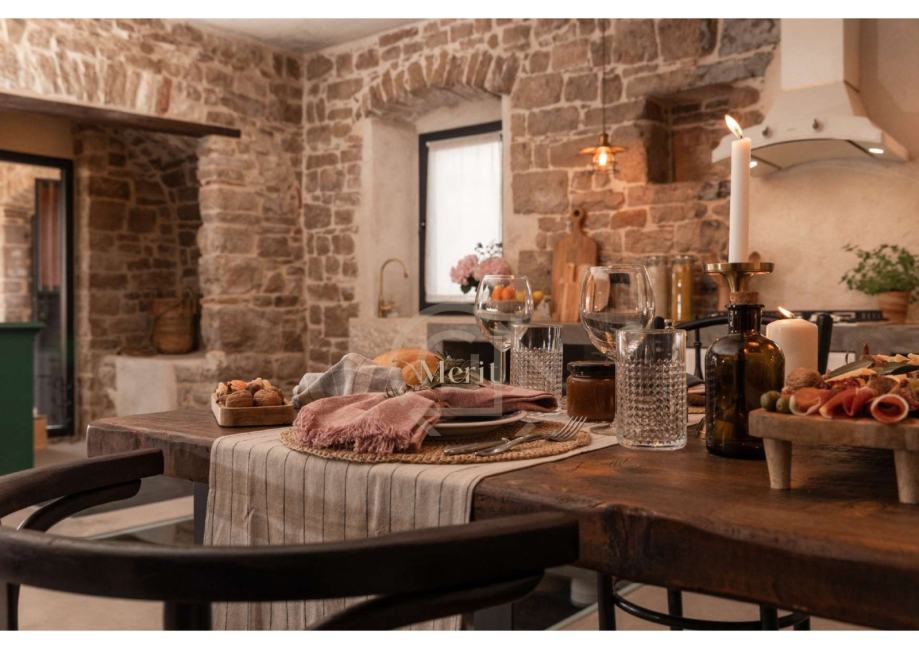Kuća je prošla pažljiv i detaljan proces renovacije, pri čemu su majstori lokalnih obrtnika sačuvali najvrjednije elemente – od autentičnih kamenih zidova i drvenih greda, do originalnog starog namještaja i dragocjenih mirina.