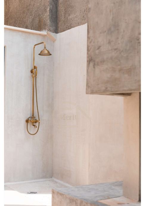 Na prvom katu kuće, dočekuje vas terasa s bazenom, koja ljeti oživljava pod sjenom grana murve – simbol tragične grčke ljubavi. Bazen s ugrađenim mlaznicama i grijanim vodama pruža potpuni luksuz, dok ugrađeni bar dodaje još jednu dimenziju uživanja.