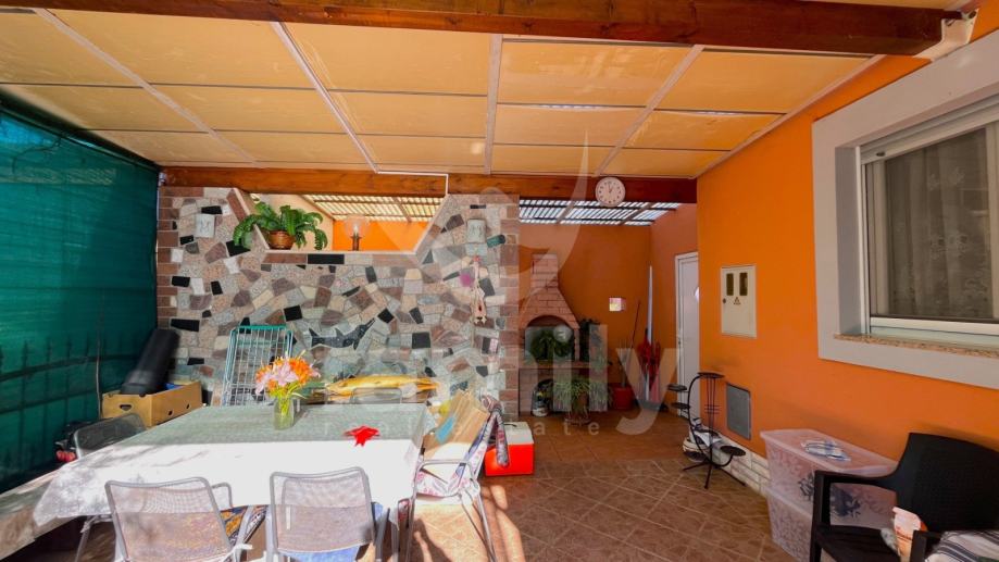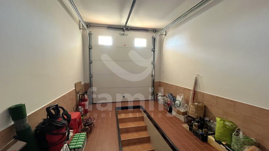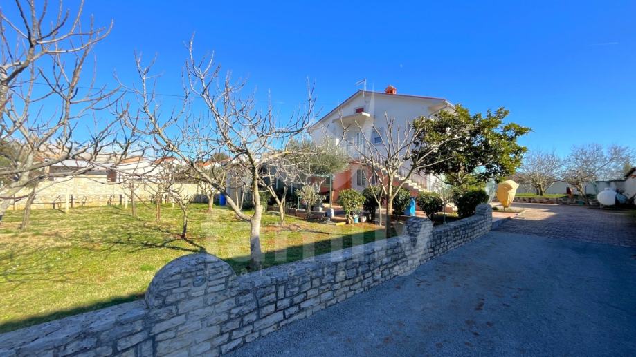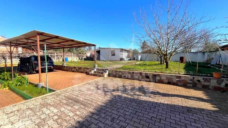 Na atraktivnoj lokaciji u mirnom naselju koje se nalazi unutar općine Marčana na udaljenosti od mora od svega 2,2 km nalazi se ova predivna samostojeća kuća s velikom okućnicom od 1846 m2. Kuća se proteže na podrum, visoko prizemlje i prvi kat te je njena ukupna površina 290 m2. Sastoji se od dvije odvojene stambene jedinice. Jedan stan u prizemlju s pristupom garaži i podrumu i drugi stan na prvome katu. Na velikoj okućnici posađeno je dvadesetak stabala raznih voćaka. Iza kuće nalazi se i pomoćna zgrada površine 30 m2 koja se koristi kao radiona, a može se prenamjeniti u konobu. Sa prednje strane kuće nalazi se velika natkrivena terasa površine 44 m2 s kaminom i stolom za ručavanje. Kuća se sastoji od: