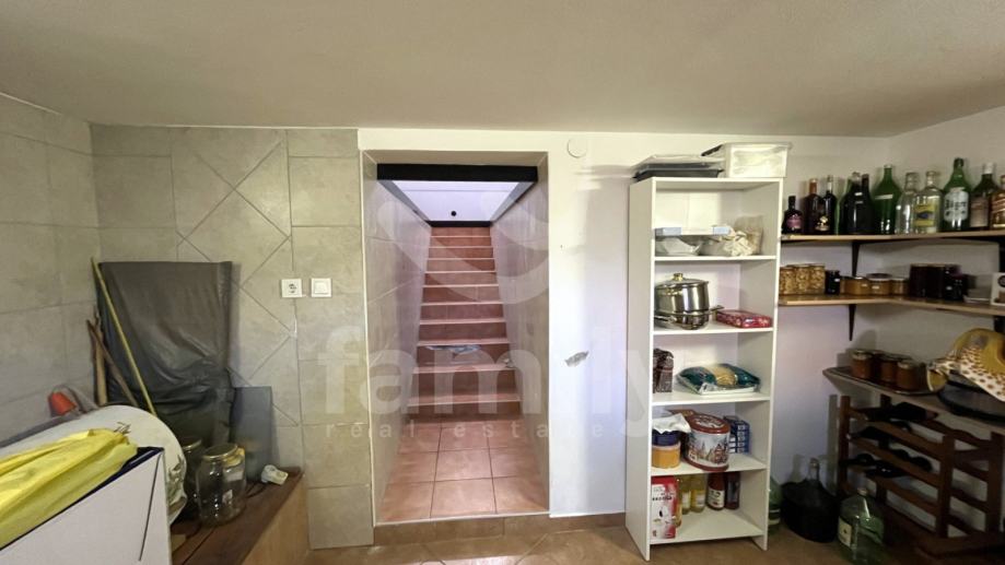 Prizemlje: hodnik, spavaća soba,dnevni boravak, kuhinja s blagavaonicom, kupatilo, pristup garaži i podrumu, izlaz na terasu