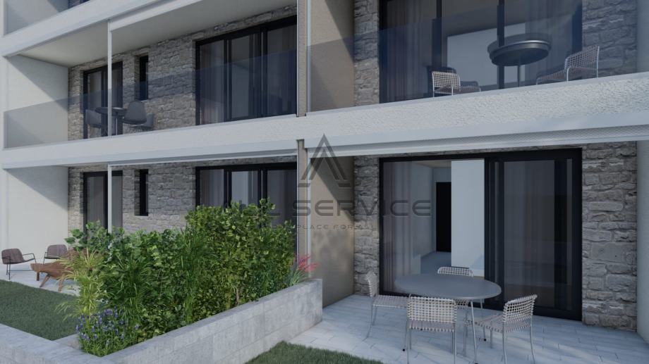 Svim stanarima će biti omogućeno korištenje prostranog bazena s kojeg se pruža pogled na more, a udaljenost od mora je svega 100-ak metara!