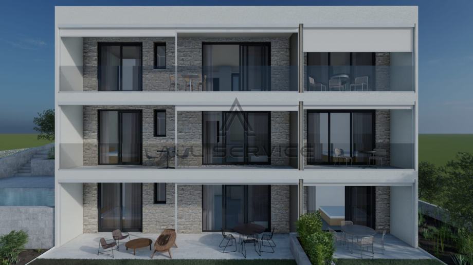 Svim stanarima će biti omogućeno korištenje prostranog bazena s kojeg se pruža pogled na more, a udaljenost od mora je svega 100-ak metara!