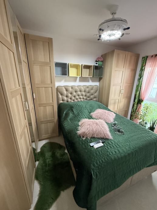 Stan je izgrađen i opremljen vrhunskim materijalima, s posebnom pažnjom na detalje, funkcionalnost i dugotrajnost. U cijenu je uključeno i vlastito parkirno mjesto smješteno odmah uz vrt, što dodatno povećava praktičnost nekretnine.