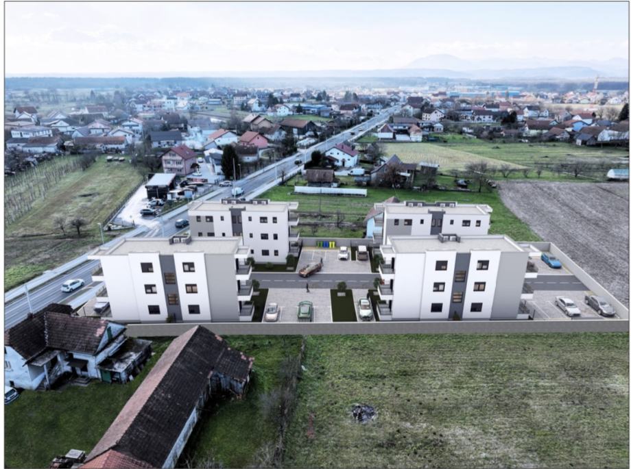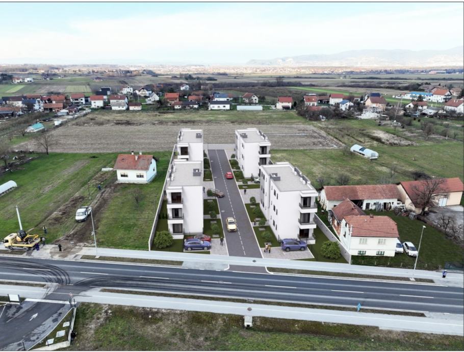 U novoj kvalitetnoj stambenoj zoni nudi se projekt koji obuhvaća četiri manje zgrade, svaka s nekoliko pažljivo projektiranih stanova.