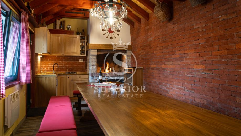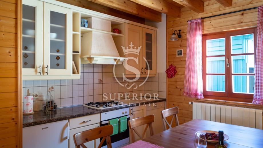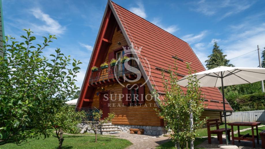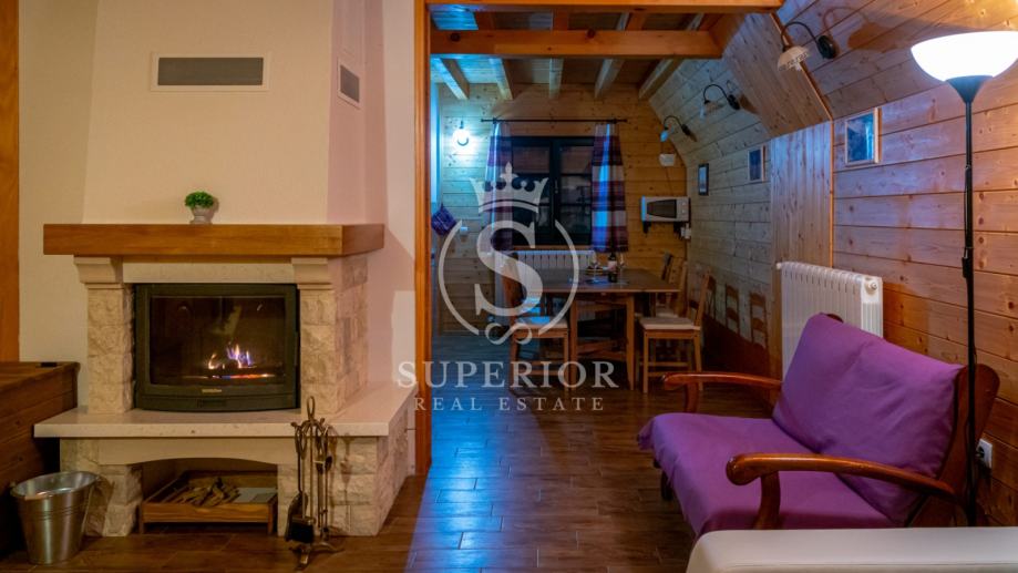 Ova jedinstvena investicijska prilika uključuje četiri luksuzne drvene kuće, vanjski bazen s jacuzzijem, dodatni wellness objekt sa saunom i konobom, te potpuno uhodano turističko poslovanje.
