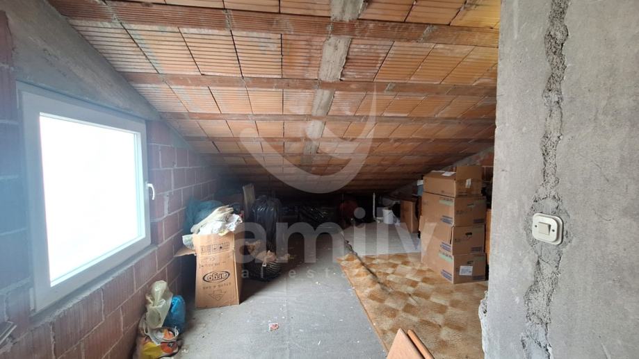 Upravo na Vidikovcu se smjestila navedena prostrana obiteljska poluugrađena prizemnica visokog potencijala sa stambenom površinom od 156 m2. Sastoji se od ulaznog predprostora, komfornog dnevnog boravka, dvije veoma prostrane i osvijetljene spavaće sobe od kojih jedna posjeduje izlaz u vrt dok druga posjeduje izlaz na balkon, dvije kuhinje sa prostorom za ručavanje kao i dvije kupaonice opremljene perilicama rublja. Podovi su u spavaćim sobama obloženi visokokvalitetnim parketom dok je u ostatku nekretnine postavljen laminat i keramika, postavljena je PVC i ALU stolarija sa roletama te je kuća opremljena termofasadom debljine 8 cm. U potkrovlju navedene nekretnine se nalaze dvije prostorije koje trenutno služe za skladištenje s tim da postoji mogućnost preuređenja obzirom da su sprovedene instalacije struje te je postavljena PVC stolarija sa zamućenim staklima.
