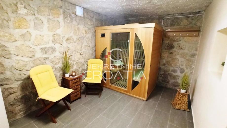 Vanjski bazen sa sunčalištem, sauna u suterenu kuće.