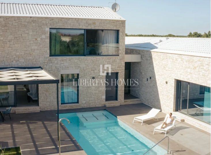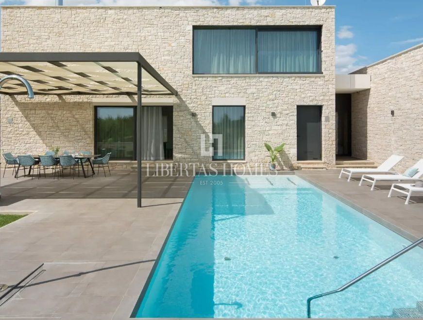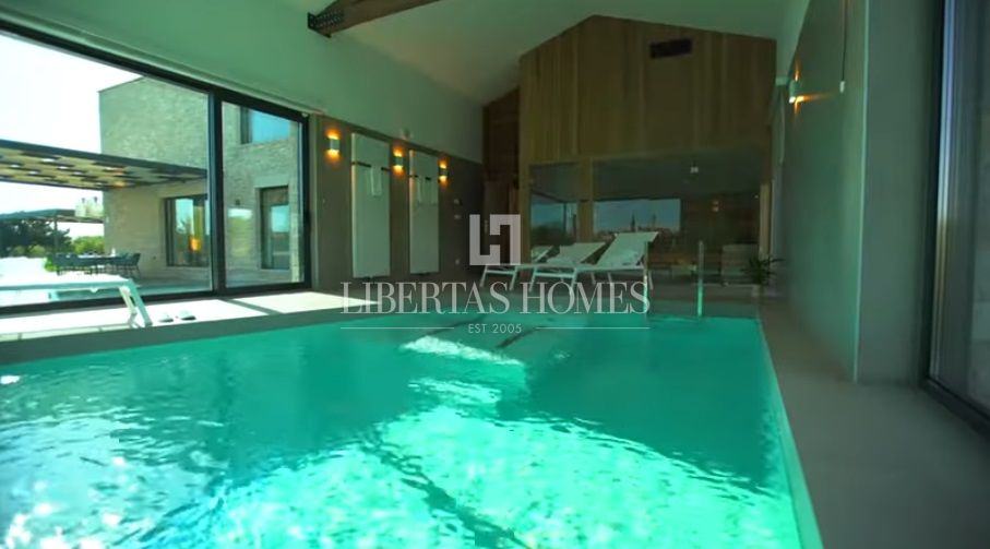 PRODAJA KUĆE/VILE, ISTRA, BALE, 360 m2 kuća, 3200 m2 vrt. Prodaje se predivna VILA u mjestu Bale 13 km od mora. Luksuzno namještena sa unutarnjim i vanjskim bazenom. 4 velike sobe (od 22-29 m2) sa svojim kupaonicama pružaju poseban komfor kao i veliki dnevni boravak sa open space kuhinjom. Sauna kao dodatak bazenu je također kutak za opuštanje a predivne terase sa vanjskim roštiljem ljeti postaju vaš dnevni boravak! Oaza zelenila i mira sa predivnim dizajnom i savršenom izvedbom ova VILA nudi odmor iz snova! Za više informacija nazovite!