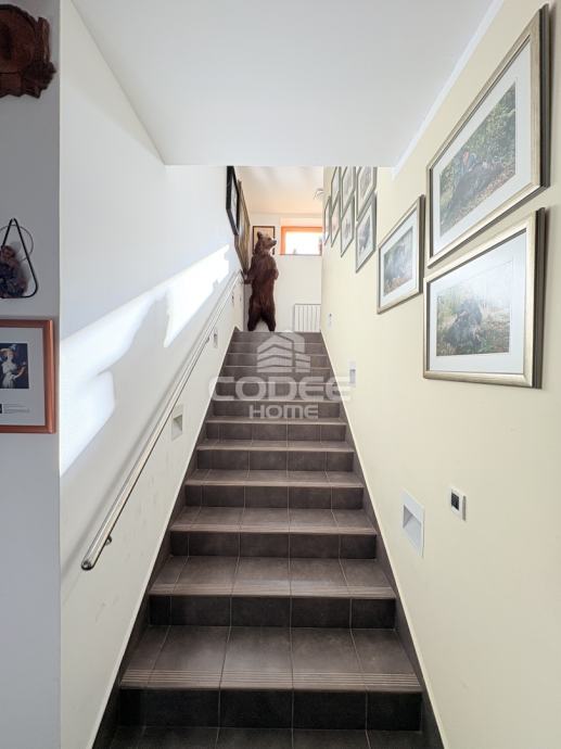 Prodaje se impresivna, kvalitetno izvedena kuća smještena na velikoj parceli s uređenim vrtom, voćnjakom, sustavom navodnjavanja i kaskadnim gredicama. Objekt je građevinski vrlo čvrst — troslojna armatura i debeli zidovi (≈ 43 cm bez žbuke), krovište od impregnirane drvene građe i premium ceramika (njemački crijep G10). Vanjska obnova izvedena je predano: novi krov, nova vanjska stolarija, troslojna stakla s inertnim plinom, stiropor-fasada i automatske aluminijske rolete.