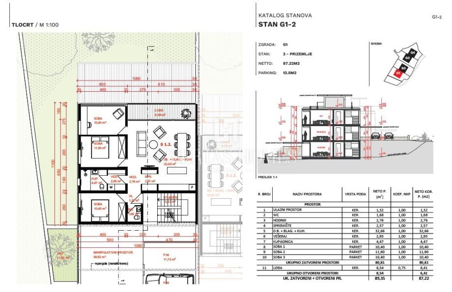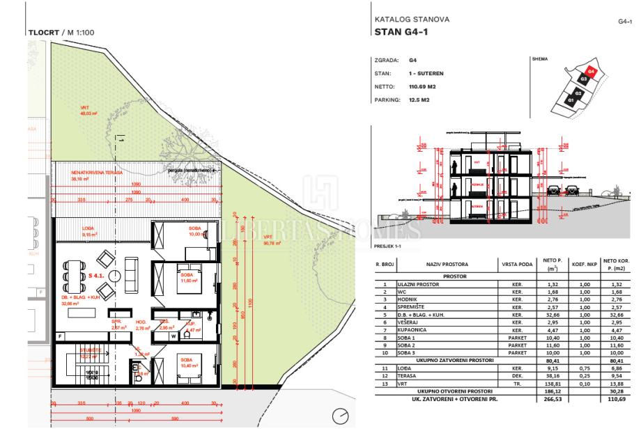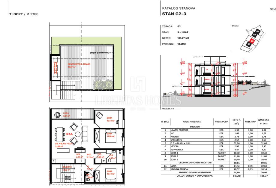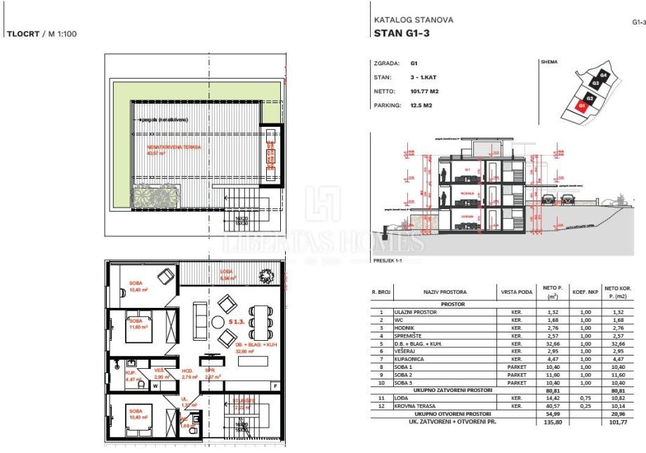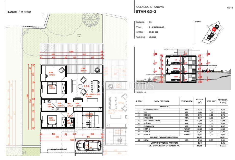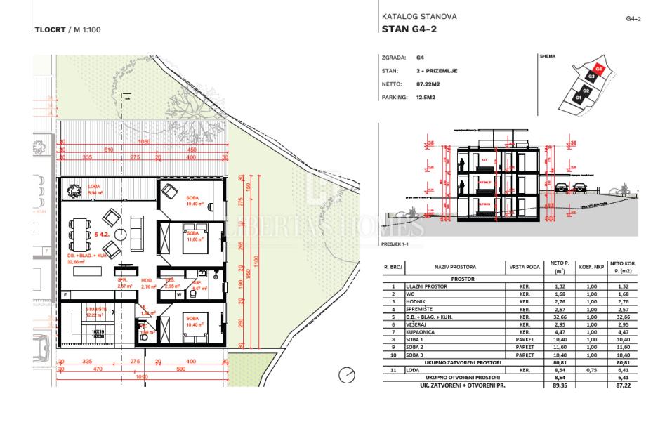 Projekt se sastoji od dviju dvojnih stambenih zgrada, G1 i G2, te G3 i G4. Svaka lamela ima tri stambene jedinice – po jednu u suterenu, prizemlju i na katu – ukupno 12 stanova. Zgrade su projektirane s naglaskom na funkcionalnost, udobnost i suvremeni arhitektonski stil, koristeći materijale visoke kvalitete i suvremene građevinske standarde.