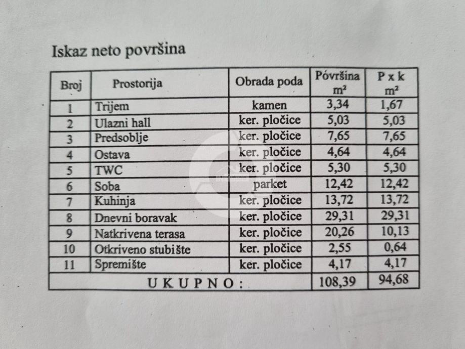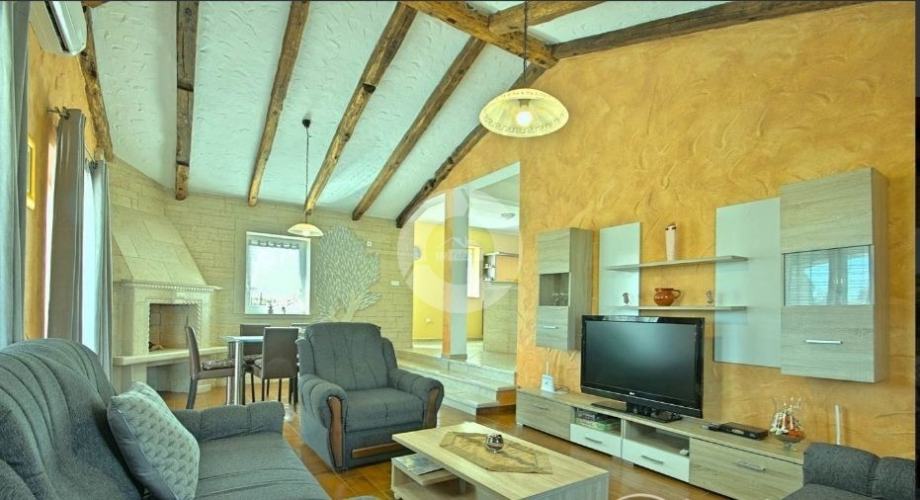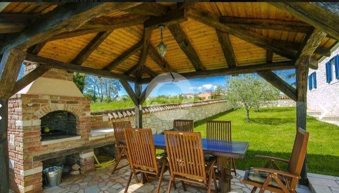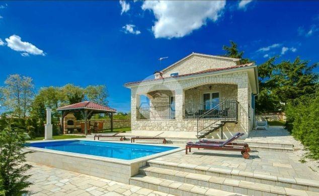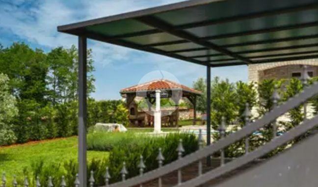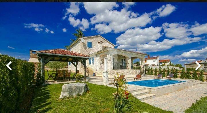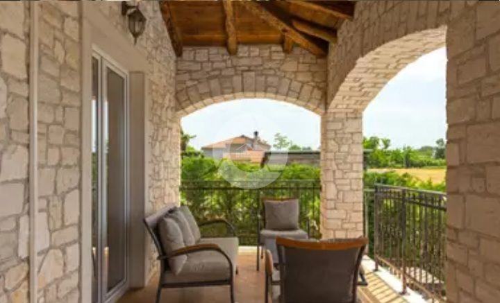 Samostojeća kuća s bazenom nalazi se u malom istarskom gradiću na vrlo mirnoj lokaciji. Sagrađena je 2013. godine u autohtonom, istarskom stilu, na parceli od 770 m2. Sastoji se od prizemlja i kata. U prizemlju se nalazi ulazni hodnik, predsoblje, ostala, kupaona, spavaća soba, kuhinja, dnevni boravak, spremište i velika natkrivena terasa od 20 m2. Unutarnjim stepenicama se odlazi na kat gdje se nalaze još dvije spavaće sobe, dvije kupaone (jedna manja kupaona je u sklopu spavaće sobe) i natkrivena terasa od 9 m2. Svaka soba ima TV i internet. Kuća ima 162,53 m2 korisnog prostora sa terasama (po koeficijentu nešto manje - 145 m2). Kuća je potpuno opremljena namještajem i opremom, te se iznajmljuje u turističke svrhe. U vrtu se nalazi bazen od 33 m2 i ljetna kuhinja, natkriveni parking za dva automobila i uređeni dio okućnice. Kuća je, obzirom na velik broj rezervacija, veliki potencijal za turistički najam, no može služiti i svrsi stanovanja.