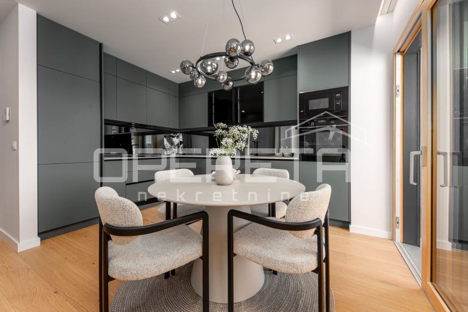 Stan se nalazi u zgradi koja je dio sofisticirane arhitekture, gdje su ugradbeni materijali i tehnologije kombinirani kako bi omogućili vrhunski životni standard. Od termoizolacije i vrhunske zvučne izolacije, do preciznih završnih detalja koji čine život u ovom stanu posebnim.