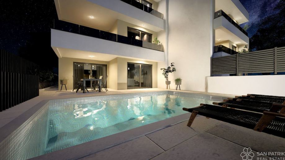 Svaka stambena jedinica pruža visoku razinu udobnosti i privatnosti. Posebno se izdvaja stan u prizemlju koji ima vlastiti bazen i okućnicu – idealno za boravak tijekom cijele godine ili luksuzni odmor. Svakom stanu pripadaju po dva parkirna mjesta, a cijeli projekt je osmišljen tako da pruži maksimalnu praktičnost i komfor.