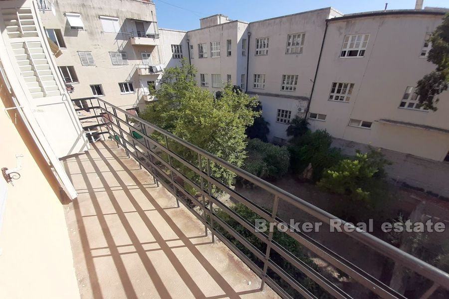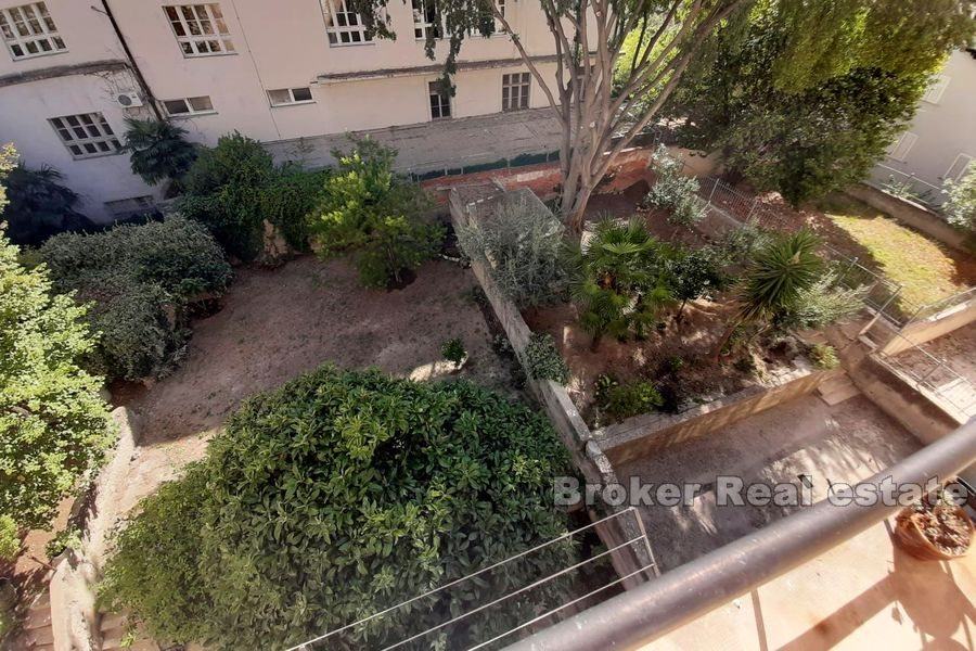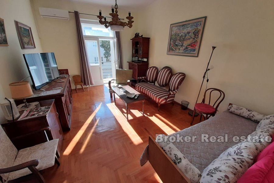 Elegantni gospodski stan, za dugoročni najam, pozicioniran na drugom katu stambene zgrade u blizini centra Splita, orijentacije sjever-jug, kompletno namješten i opremljen.