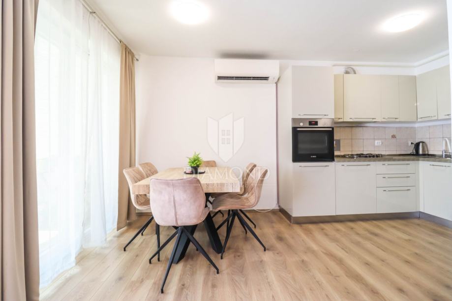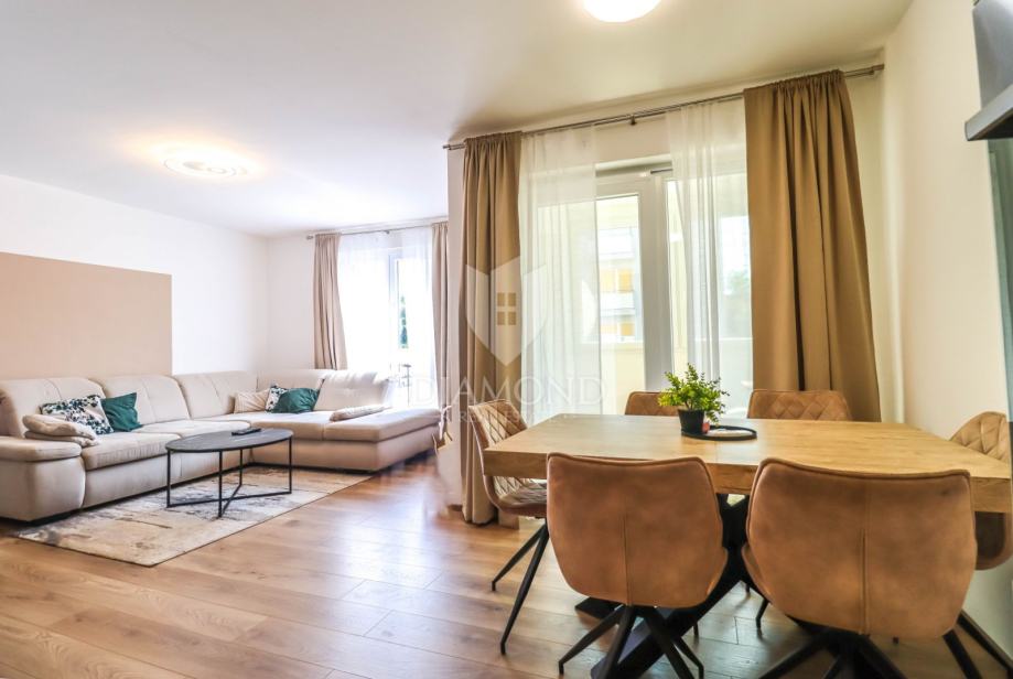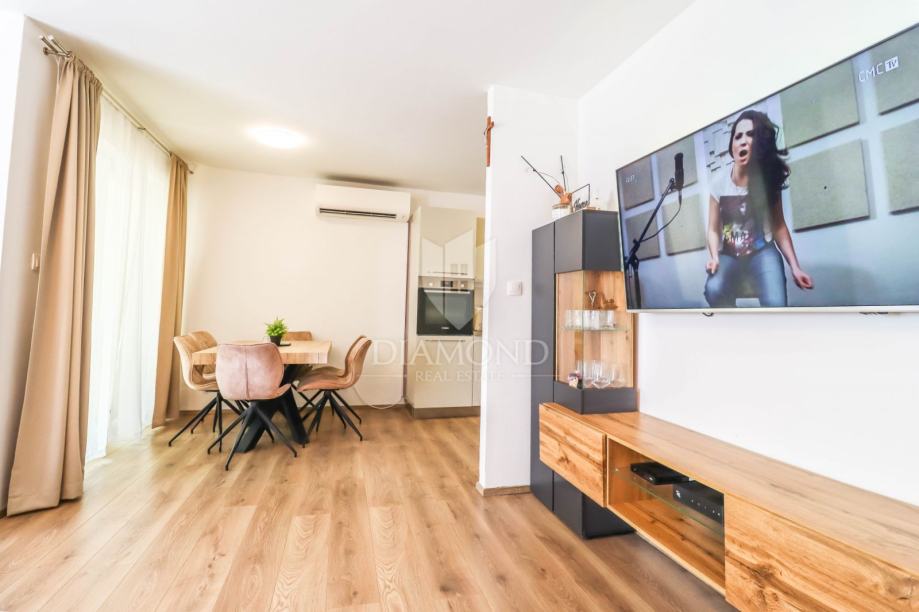 Stan je smješten na drugom katu dobro održavane zgrade. Prošle godine stan je potpuno renoviran i opremljen s velikom pažnjom na detalje i estetski sklad. Prostorije su svijetle i prostrane, a raspored je funkcionalan. Stan se sastoji od predsoblja koji vodi do dvije udobne spavaće sobe, kupaonice s podnim grijanjem koje osigurava dodatnu udobnost u hladnijim mjesecima, a tu je i zasebni WC za dodatnu praktičnost. Dnevni boravak je prostran i povezan s kuhinjom i blagovaonicom. Iz blagovaonice se izlazi na balkon, idealno mjesto za uživanje u jutarnjoj kavi ili večernjem odmoru. Stan također ima ostavu koja pruža dodatni prostor za pohranu, a u prizemlju zgrade nalazi se šupa koja pripada stanu. Oko zgrade ima dovoljno parkirnih mjesta, što olakšava parkiranje u bilo koje doba dana. Stan koristi gradski plin za kuhanje, što je praktično i ekonomično.