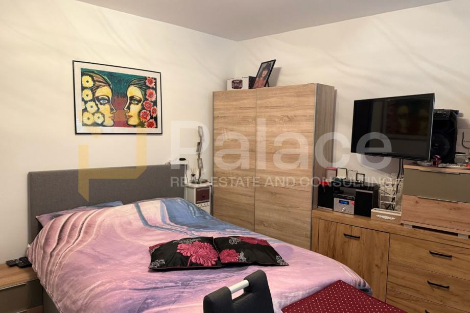 Unutrašnjost stana osmišljena je s naglaskom na funkcionalnost i estetiku. Sastoji se od udobne spavaće sobe, svijetlog dnevnog boravka povezanog s praktičnom kuhinjom, moderne kupaonice te dodatnog spremišta koje pruža vrijedni prostor za odlaganje.
