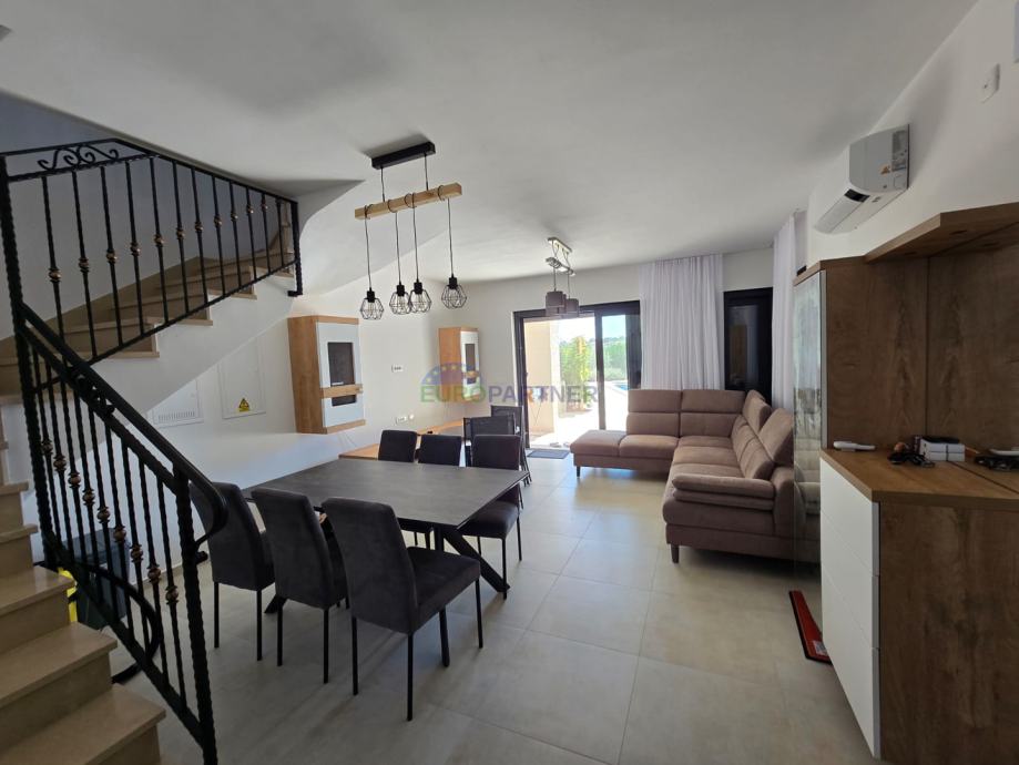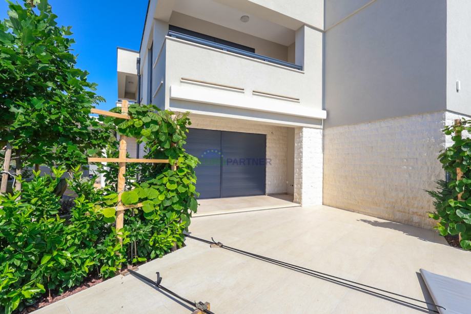 Kuća se prostire na 87,60 m2 stambene površine koja se proteže kroz dvije etaže ,izgrađena na zemljištu od 350 m2. Ograđena je sa svih strana, čime se osigurava potpuna privatnost u odnosu na susjedne kuće . U prizemlju se nalazi prostran dnevni boravak s velikim staklenim stijenama koje vode na natkrivenu terasu i bazen. Diskretno izdvojena pogled privlači moderna kuhinja s blagovaonicom, a tu su još ostava i gostinjski WC.